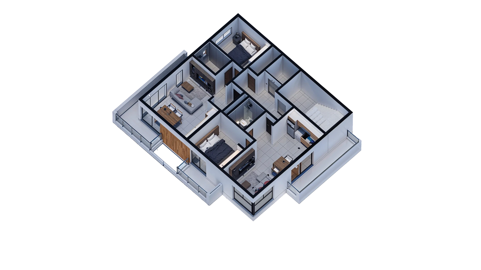 Materialidad: Muros aislados. Aislación de aberturas con material de PVC con doble vidrio hermético. Pisos de porcelanato en living, cocina y baño. Habitaciones con piso vinílico. Posee caldera, cocina, bajo/sobre mesada y frente de placares. Paredes con doble masillado. Calefacción por radiadores. Materialidad exteriores: pintura texturado negro, revestimiento símil madera pvc/sanding y diseño de balcones hormigón visto y vidrio.
