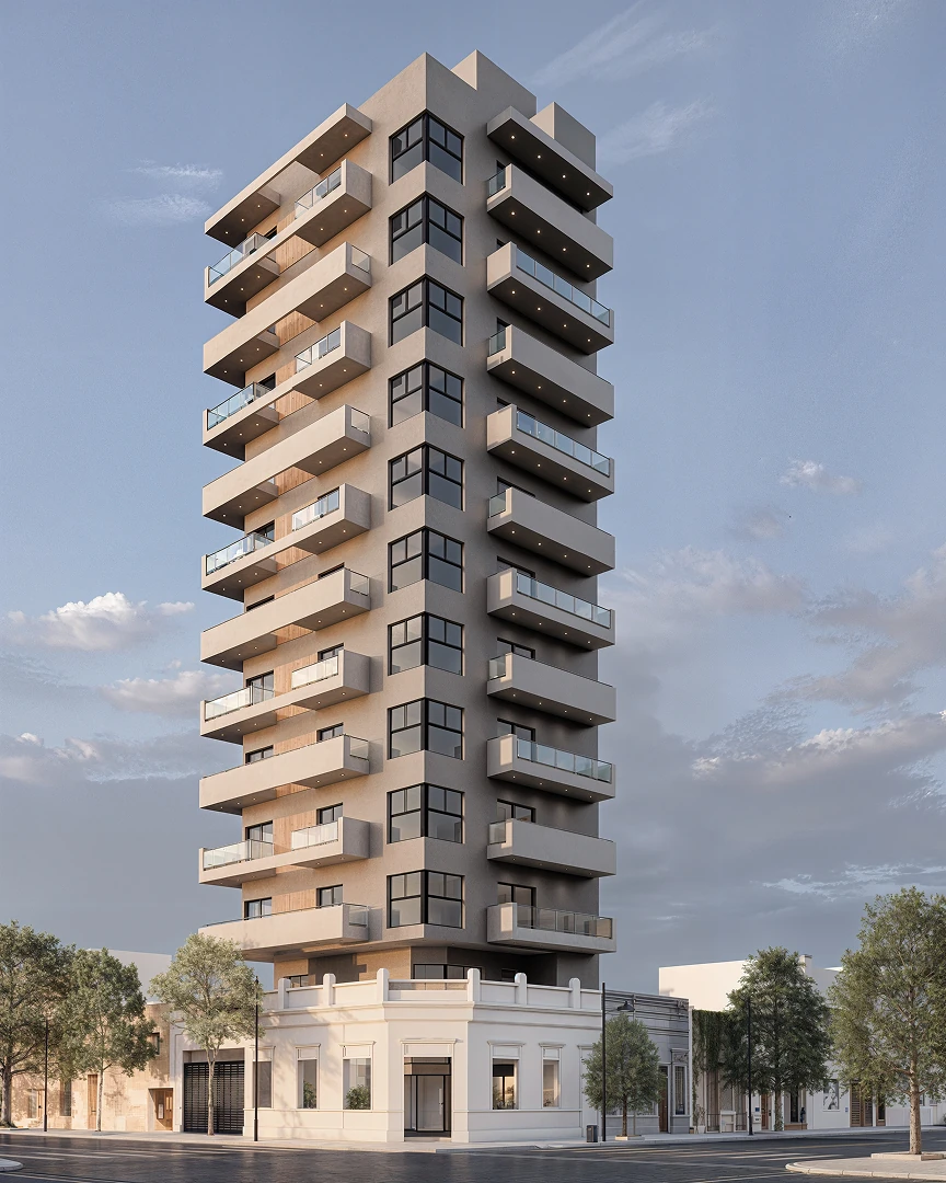 Descripción: proyecto residencial urbano, complejo de 14 departamentos con 3 niveles de construcción con amenities. departamentos de 1 y 2 dormitorios. En complejo emplazado en un lote de 63×67 (4200 m2).